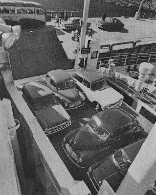 Cars being loaded in the old days. This location is now covered in with cabins and the ships galley.