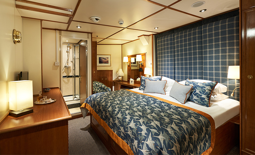 The Loch Crinan cabin on deck 1 (that is on the lowest deck) where there are four insides in the bow section and 2 in the stern section. All cabins are named after Lochs or Isles so there are no cabin numbers. The cabins one deck up (Waterfront deck) have portholes and the deck above (Princess deck) has windows and are the biggest ones.