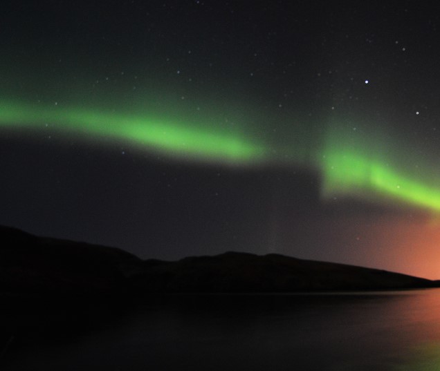 Thus we had a quiet day today, but during dinner pandemonium broke out as the naturalist Brian came down to show the photos he had just taken of the the Northern Lights. Luckily he did so after the main course had been served as a considerable number of guests dropped their cutlery and raced out. Had he come in earlier, I think he would have been confronted by a Chef who would not have been “amused”. The Northern Lights were rather faint but on the Smart Phones the fotos came out quite nicely. Lesley and I did not race out as we have seen it much more intense in the North of Norway and in Alaska.