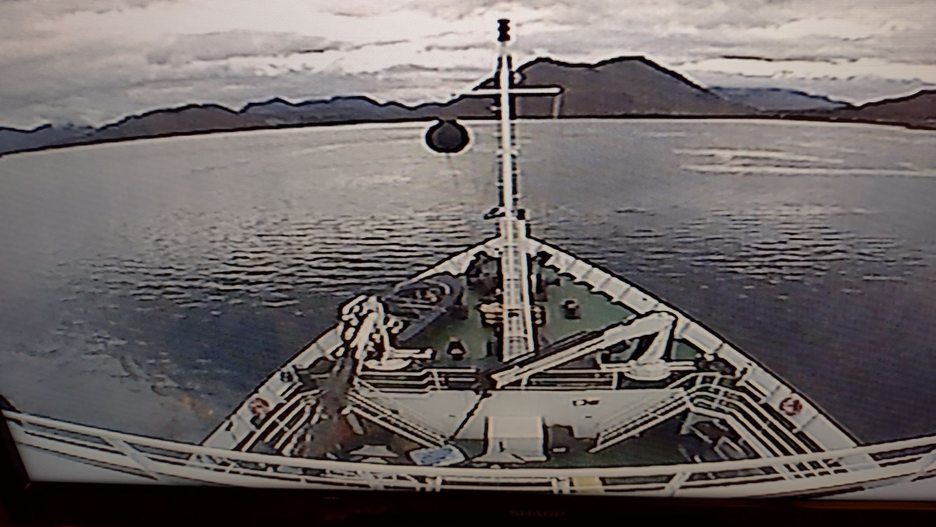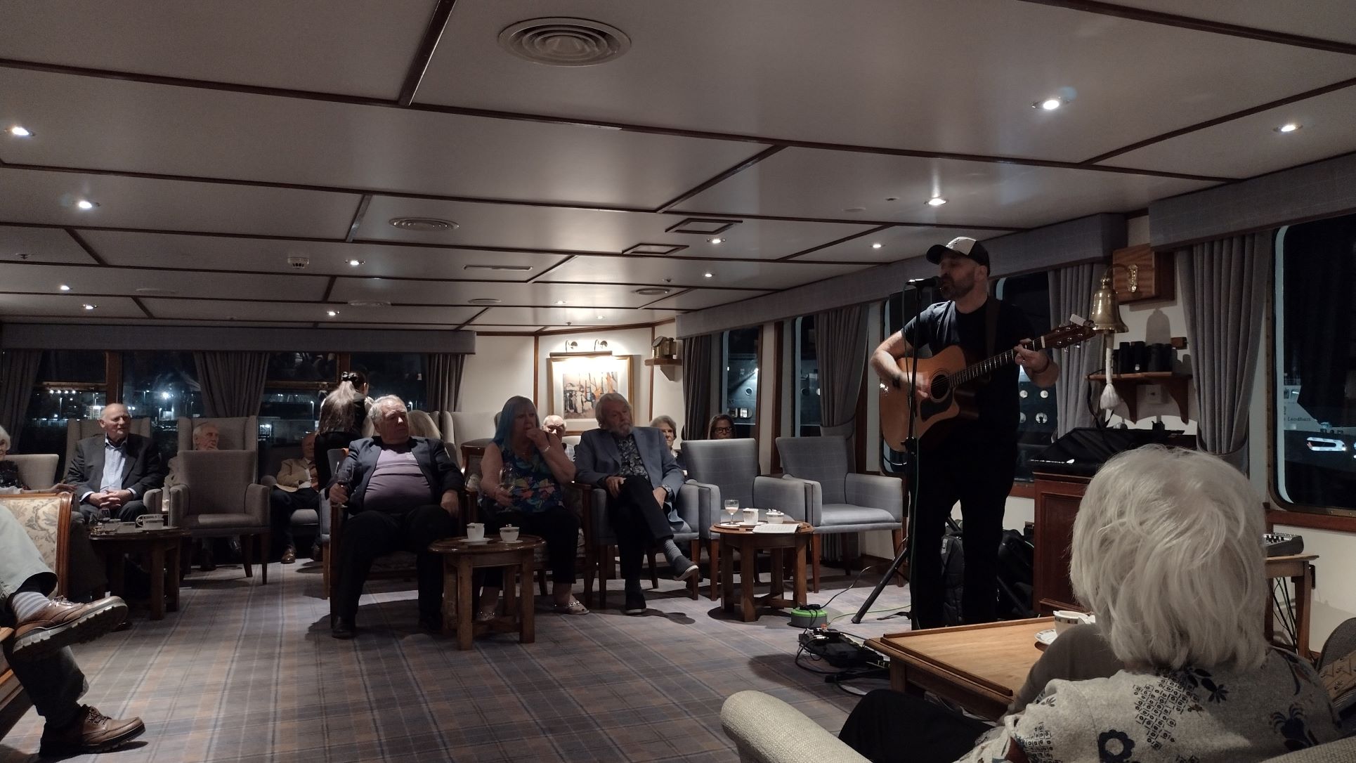 Thus we had a quiet day today, but during dinner pandemonium broke out as the naturalist Brian came down to show the photos he had just taken of the the Northern Lights. Luckily he did so after the main course had been served as a considerable number of guests dropped their cutlery and raced out. Had he come in earlier, I think he would have been confronted by a Chef who would not have been “amused”. The Northern Lights were rather faint but on the Smart Phones the fotos came out quite nicely. Lesley and I did not race out as we have seen it much more intense in the North of Norway and in Alaska.