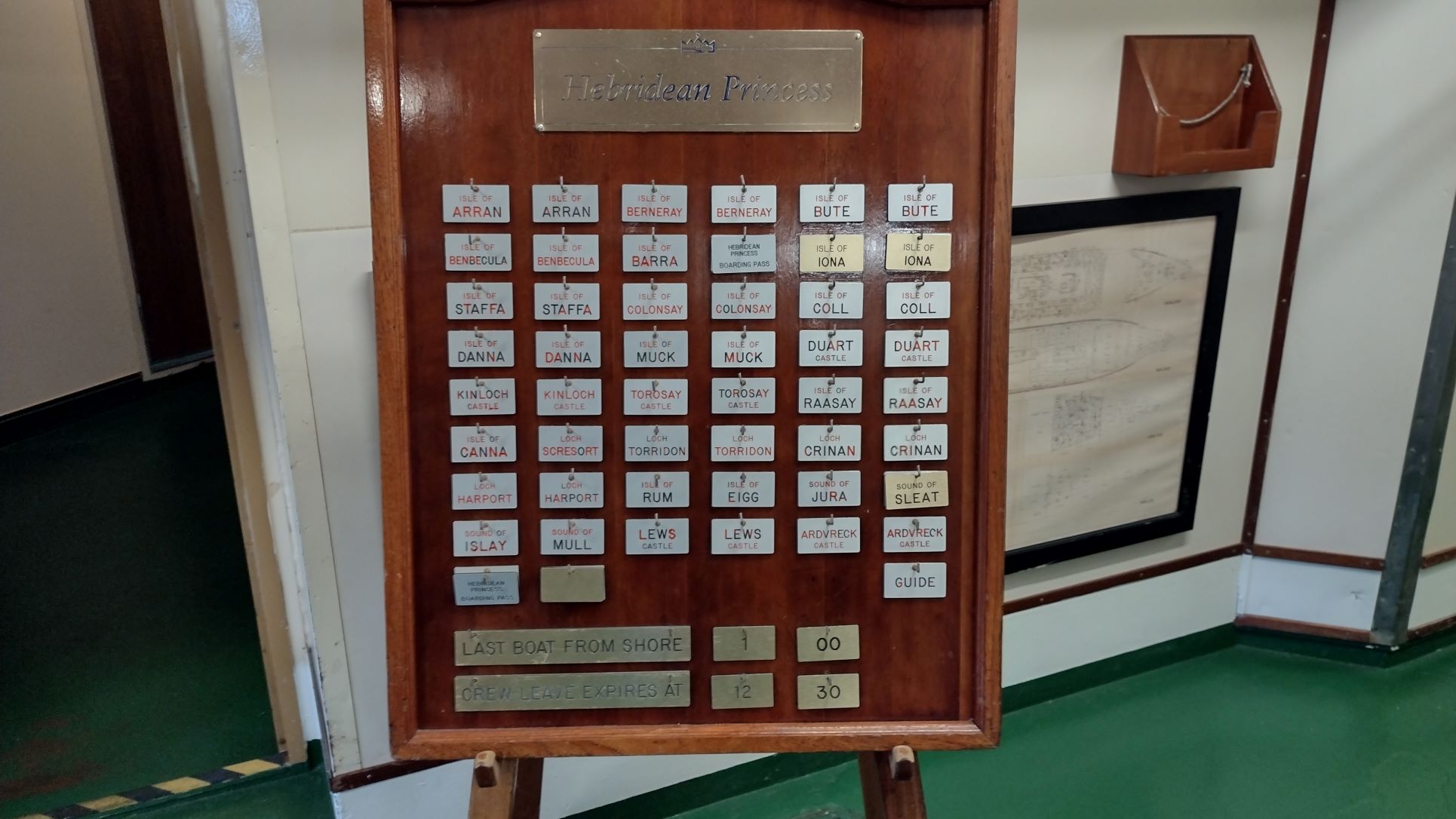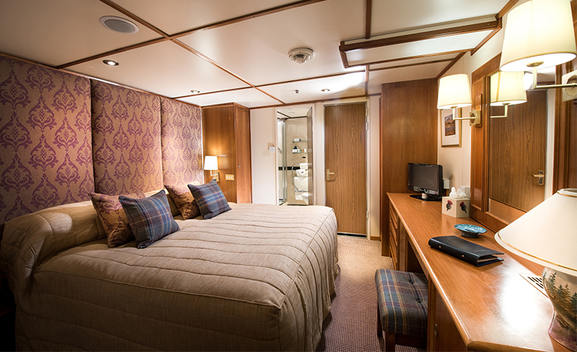 The Loch Crinan cabin on deck 1 (that is on the lowest deck) where there are four insides in the bow section and 2 in the stern section. All cabins are named after Lochs or Isles so there are no cabin numbers. The cabins one deck up (Waterfront deck) have portholes and the deck above (Princess deck) has windows and are the biggest ones.