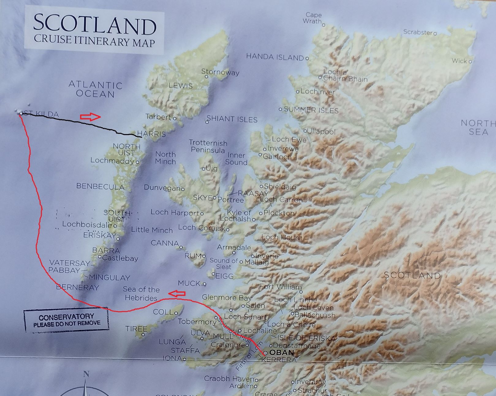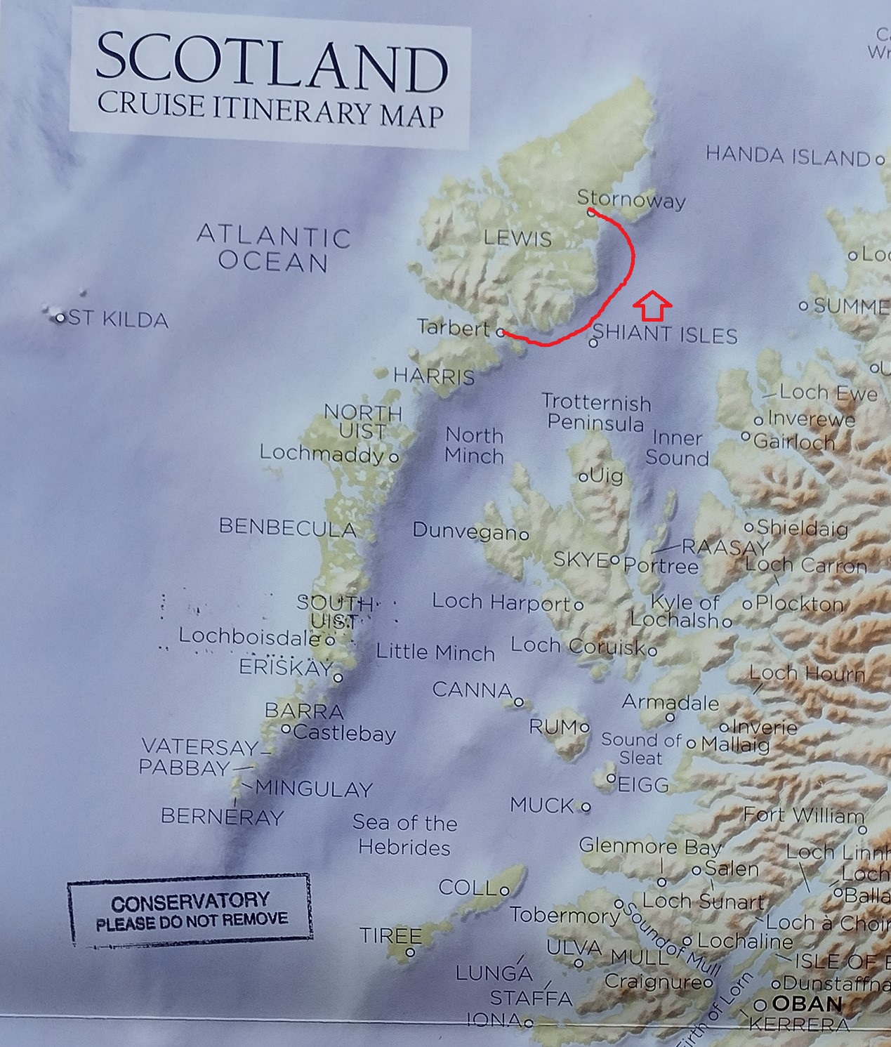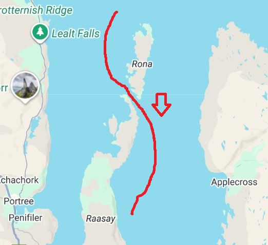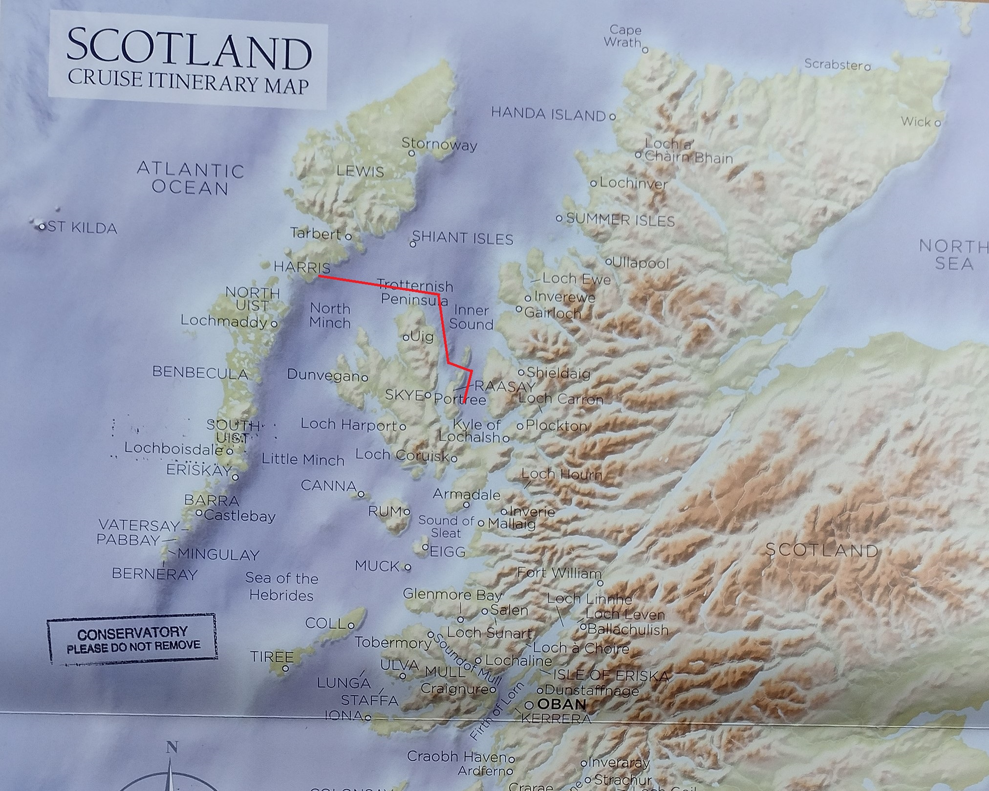 The route from Stornoway to Gairloch. I think that the captain wanted to be in the lee of the islands ahead of the turning weather, intstead of having to bounce through it tomorrow.