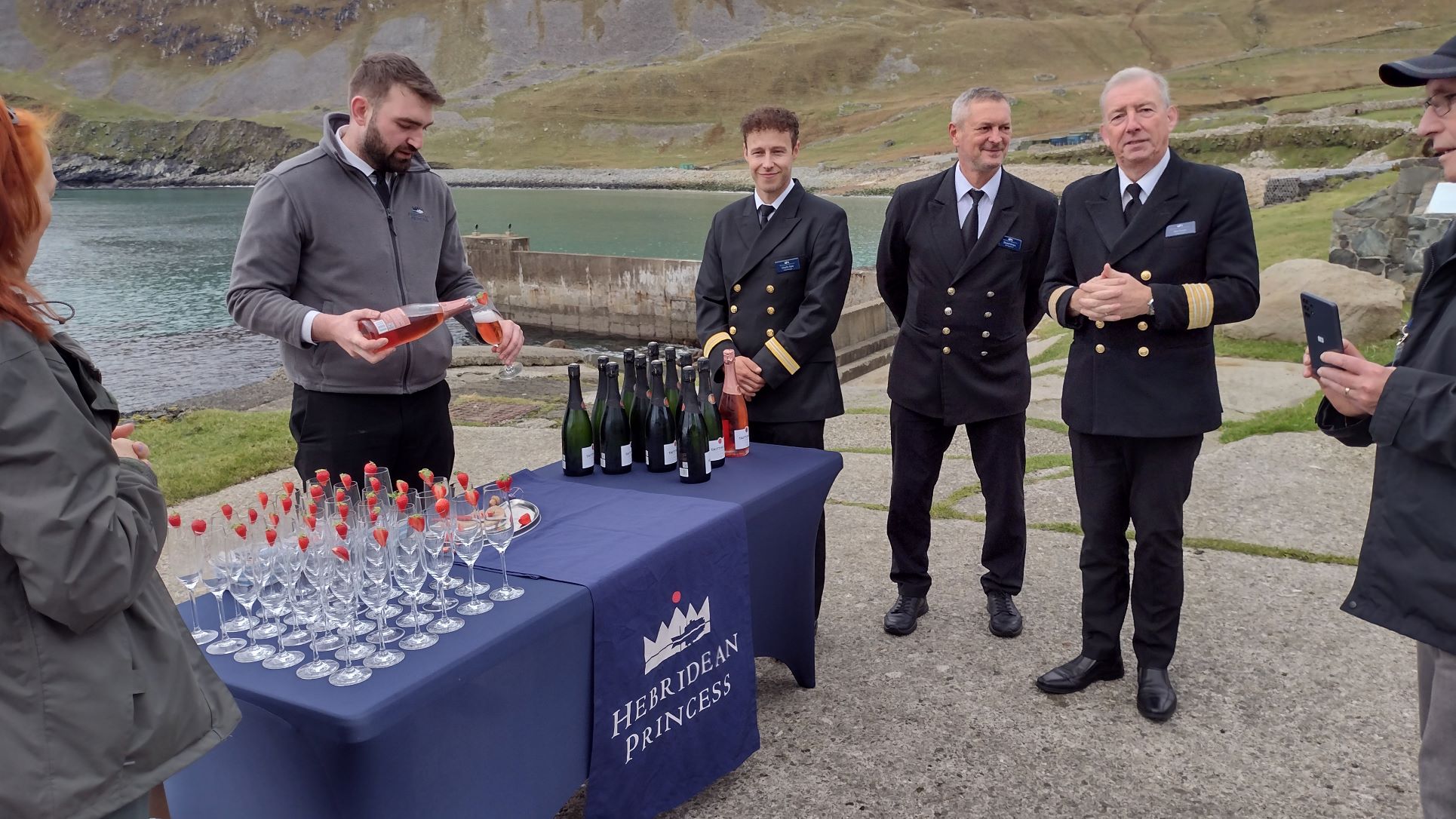 So after a sunny crossing of”The Minch” we docked at the town of Gairloch, which has a ferry dock. The ferry only comes in every other day or so, so the dock is open to the Hebridean Princess, which with its 85 meters is about the biggest ship that can dock here.