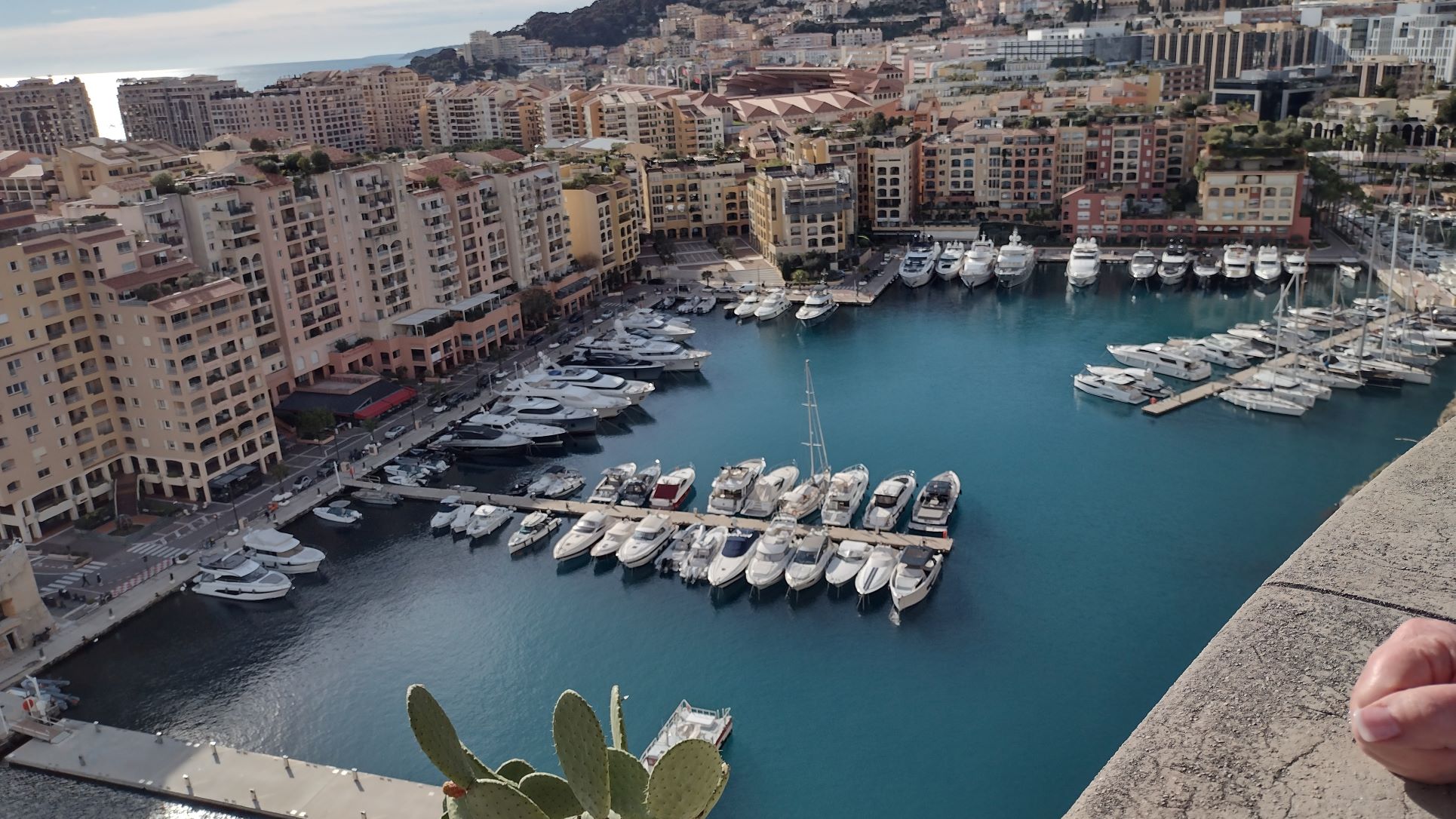 The main Monte Carlo harbour, called Hercule, is not the only one. Just to the West is “Fontveille” which a much smaller and quieter affair. This photo was taken from the lookout point in the Gardens just under the Cathedral.