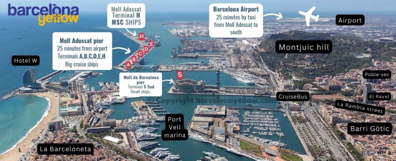 This morning we docked in Barcelona and were assigned Berth B, while the Costa Tuscani was at Berth D. Between 2010 and 2020 Barcelona heavily invested in new and state of the art cruise terminals which now run from A to H and then there are still the 3 small (old) ones at the World Trade Center. Unfortunately the mood in Barcelona has turned against the very large influx of cruise visitors and now there is the plan to demolish 2 of them again.