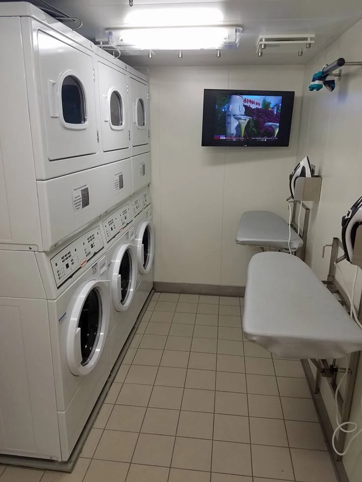 What is nice with Viking is that they have self service laundries on board, one on each deck with 4 washing and 4 dryers and 2 iron boards, free of charge. We had to hunt around for a free iron board as we have groups on board who did a pre-stay in Rome and a large contingent of chinese who seem to have been much longer on the road and now seem to live inside the laundries. (There is also a TV and couch inside so you can watch a movie while doing the washing) But I like self service laundries on board as I never get my shirts wrinkle free out of the suitcase.