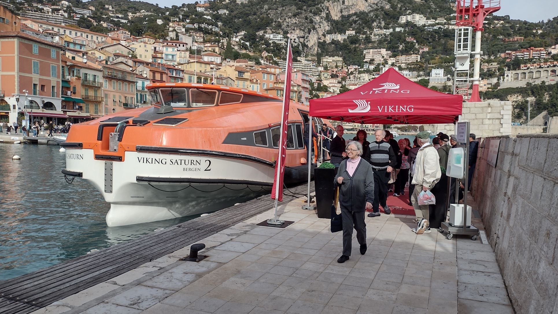 We were supposed to be all by ourselves but in the aftrnoon the MSC Splendida came in. She had not been able to dock in Marseilles due to strong winds. Apart from the city being a port of call also a number of guests were supposed to disembark and embark, so after arrival a large shore tender came out to arrange that. We had fun and games with the small parking area’s with 900+ guests and 12 busses, so let alone what they will face with handling the approx. 2200 guests on board.