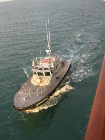A familiar sight for us, the Tampa pilot boat delivering or picking up the pilot.