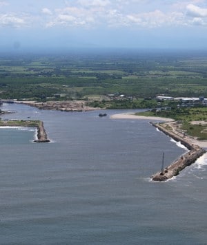 A nice and quiet day in Puerto Chiapas. Just a little swell is running against the inner breakwater. We had even less. (Stock photo from internet)