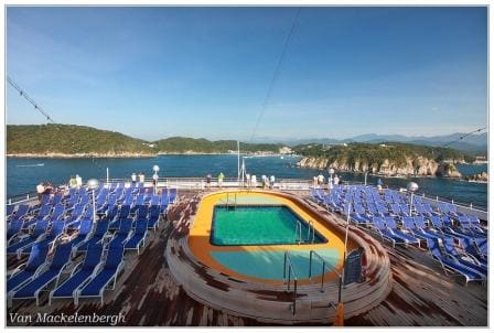 The Statendam going astern into one of the most beautiful bays in Mexico. Photo by Hotelmanager Bert van Mackelenbergh.