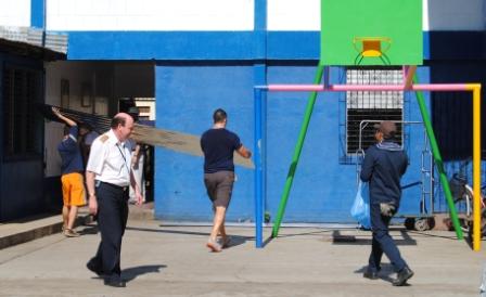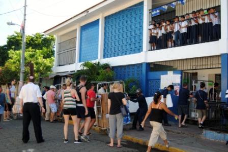 The main part of that day was filled of course with our visit to the Ruben Dario school. Although we had everything cleared with Customs before we arrived here, we knew that we would have some issues with Customs so we started early. By 07.45 the whole convoy of trolleys, 30 volunteers, four sailors, a carpenter, the Hotel director and me, we marched with the agent to the back gate and managed to be impressive and chaotic enough that we were waved through with only a little fuss. We managed to get through what we could classify as “repair material”. The pure donations had to be left behind for some unknown reason but we hoped to sort that out in the course of the morning. Hotel Director Bart Groeneveld took that challenge upon himself.