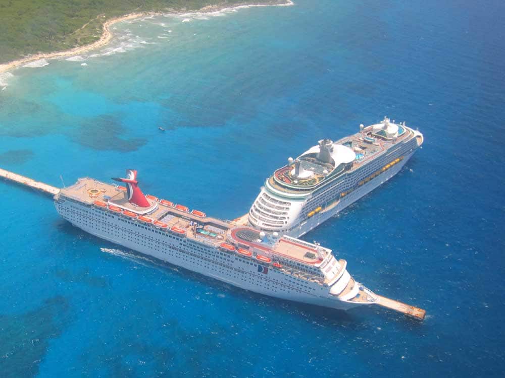 The Carnival ship is on berth 3 which is the SE pier and the RCI ship is on berth 1 facing NW. Berth 2 (on the inside) is not occupied. Photo taking from the official Costa Maya website.