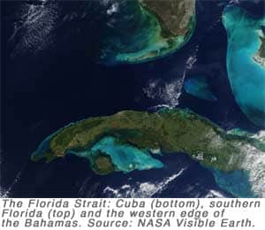 In the lower middle of the Florida Strait, is a bank and with strong NE winds, the water gets pushed around it and that gives us a nice push in the back going SE.
