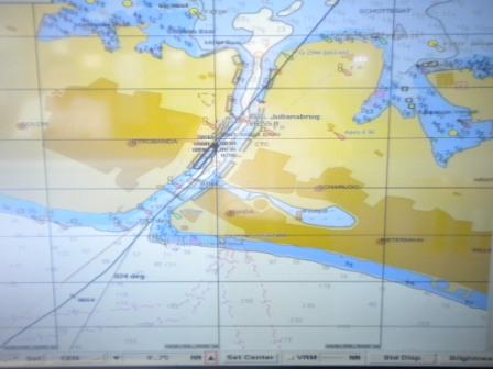 The secret of part 1 of this arrival sequence is to be early. Line up for the entrance about four miles out and then see how the elements behave when you are coming closer to the entrance and the pilot station. Logic demands that when coming closer the wind factor should get less as you come into the lee of the island and so should the current as the water gets shallower. However at times that can result in a counter current and you have to be aware of that. Of course there are other things happening that you have no control over.