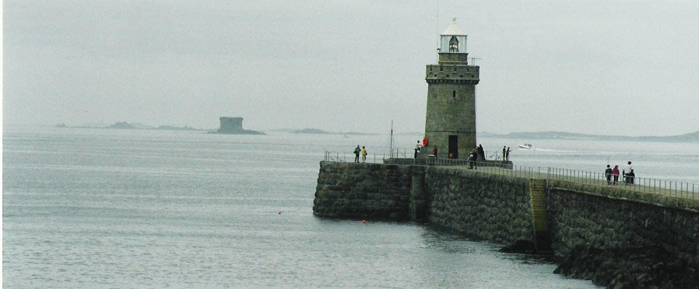 To make it easier for everybody the pilot boat parks it‘s self on top of the selected anchorage and the only thing the ship has to do is to bring the anchor above that location and drop it. Preferably after the pilot boat has removed itself. The course up to the anchorage is first a due north heading directly for a Martello tower. These towers were erected all over Great Britain against the French in the early 19th. Century and they are basically round squat gun platforms that control an approach to a port of a strategically important area. Saint Peter Port already had a fortress at the entrance and by placing a Martello tower opposite, the combined cannons could now protect the whole port area. This Martello tower is standing in the middle of a channel called Little Russel and makes the current flowing through the channel split into parts. So when you approach; you are to the East of the Tower and you get set in one direction or the other. Then when you line up for the anchorage the Tower stops the current when you pass it and then when you are almost at the anchorage, having now sailed past the tower, the current affects the ship again.