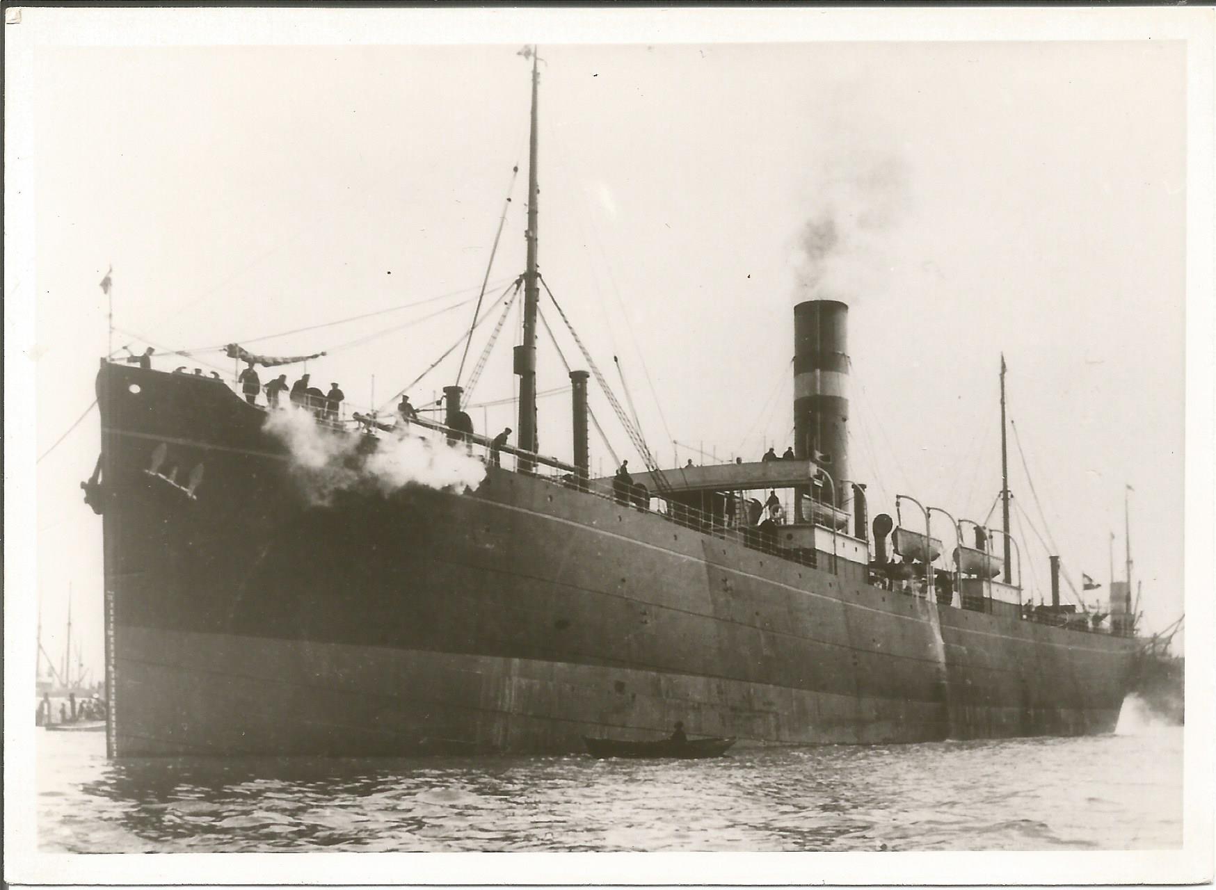Promoted in 1914 to 2nd officer she sailed for a period on the ss nieuw Amsterdam (I) the 2nd important passengership in the HAL fleet. This was in line with the company’s promotion system from youngest in rank/ smallest ship up to oldest in rank sailing on a Senior ship. When he was promoted to 1st Officer / Chief Officer he was assigned to the ss Sommelsdijk (II) one of the older cargo ships.