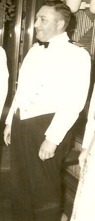 Chief Officer Jean Boerdam on board the ss Maasdam in 1959 during the captain welcome on board party. (b)