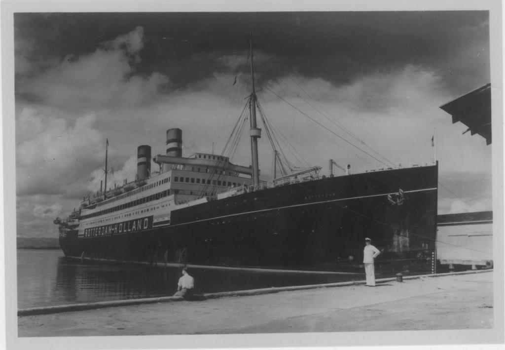 This photo shows the ss Rotterdam IV in Naples. For collecting displaced and unwanted persons. Please note the neutral lettering and Dutch flag on the side of the hull, indicating a neutral Dutch ship. (d)