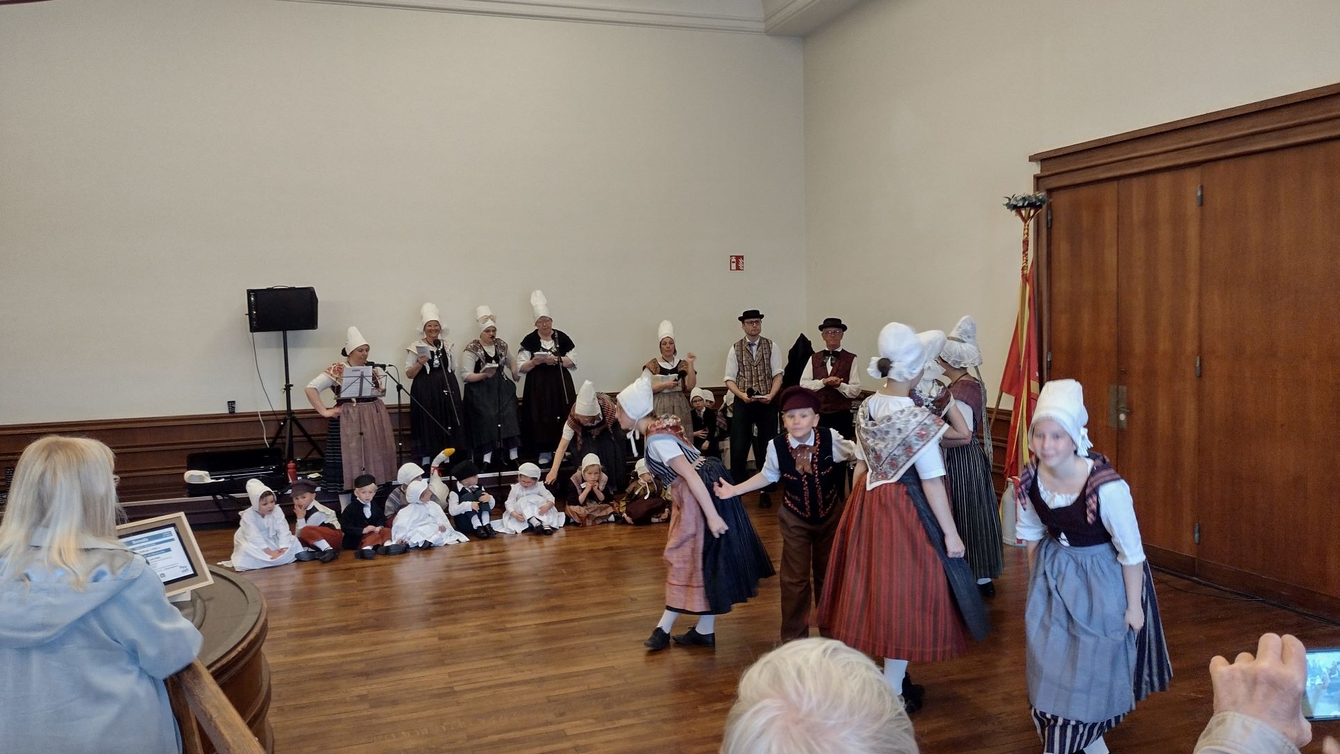 For the guests the most interesting part was most likely the whole group of small, very small, children in local costumes on display. They were sitting there and remained sitting there for a good two hours while the adults and older children were dancing, singing and playing instruments. My wife and I came back when they were just packing up around noon time and just at the moment when the little ones were all “released from custody” and it was an cascade of French excited noise rolling through the old customs hall, while they all fled together to the outside.